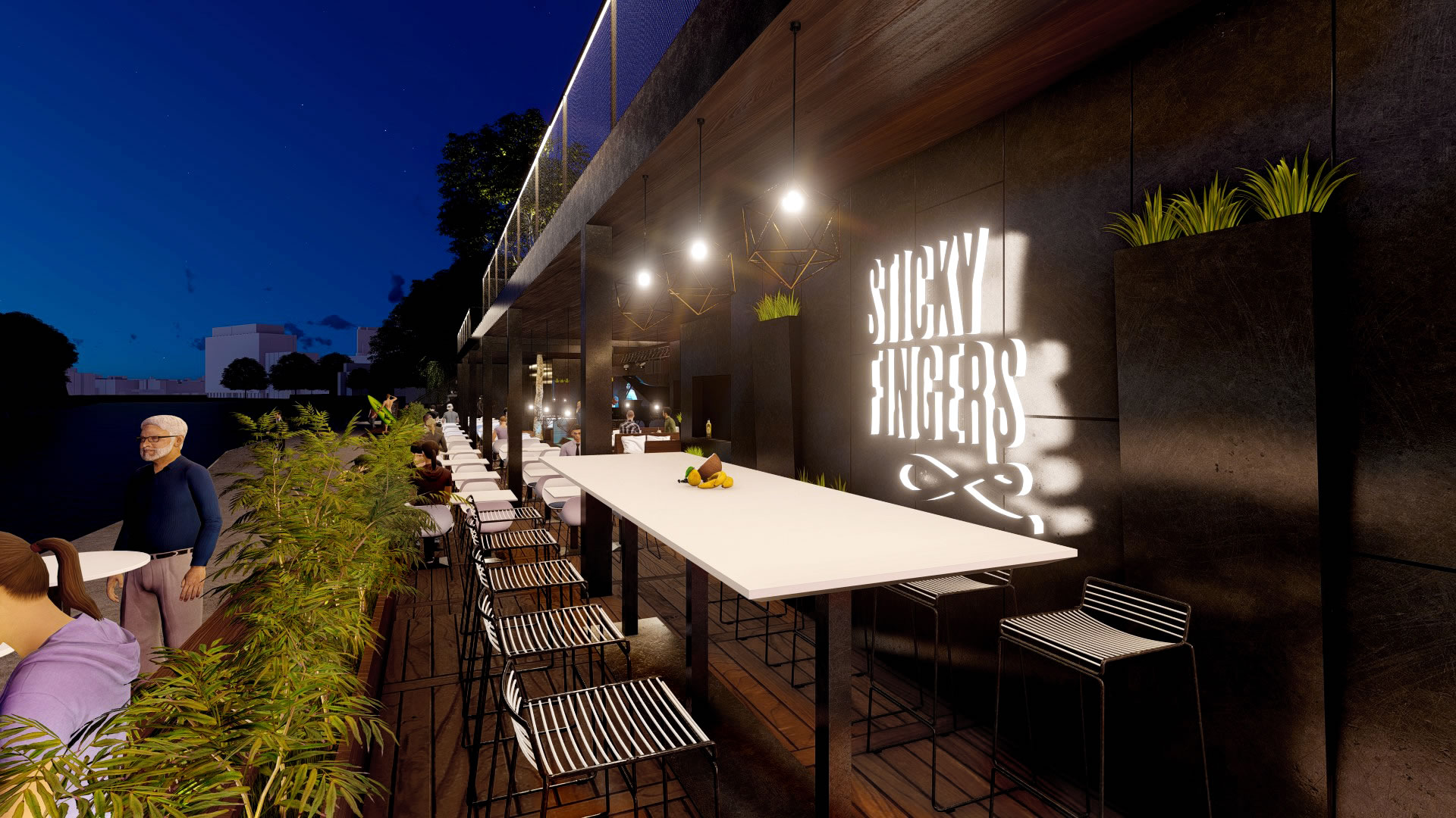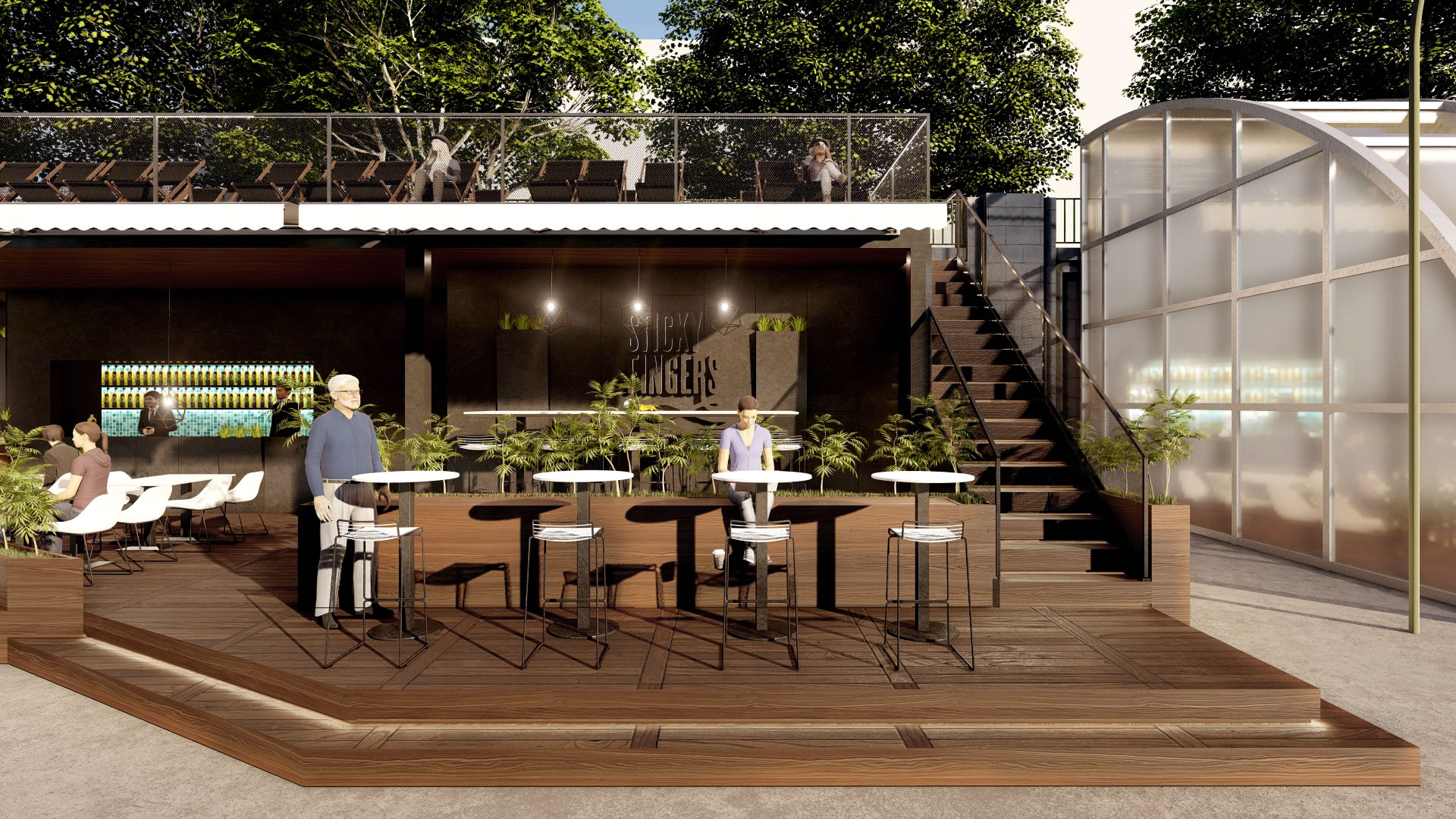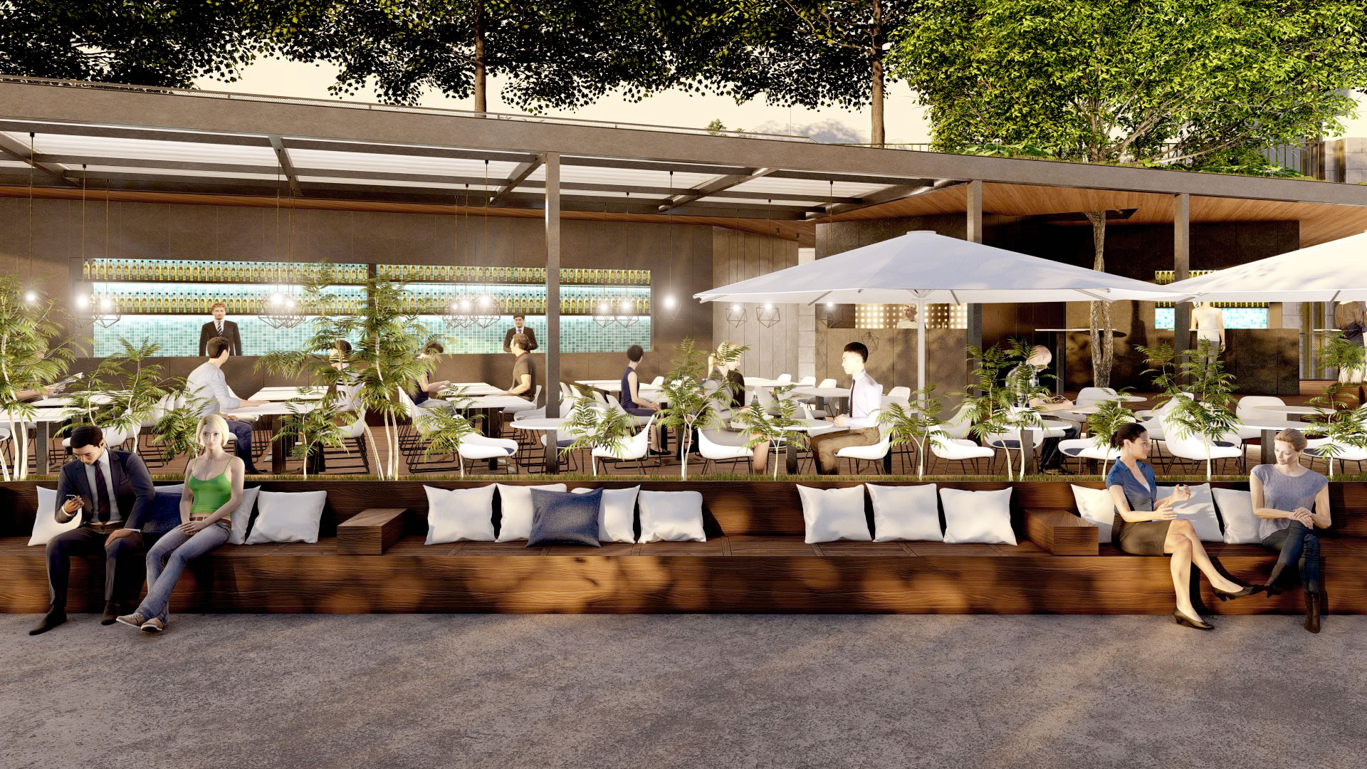 Neben den klassischen Gastrobereich mit Esstischen wird es auch eine Working-Lounge geben die BesucherInnen anziehen soll die bei gutem Wetter ihr Büro nach draußen verlagern wollen. Ausgestattet wird dieser Bereich mit genug Steckdosen und starkem W-LAN.