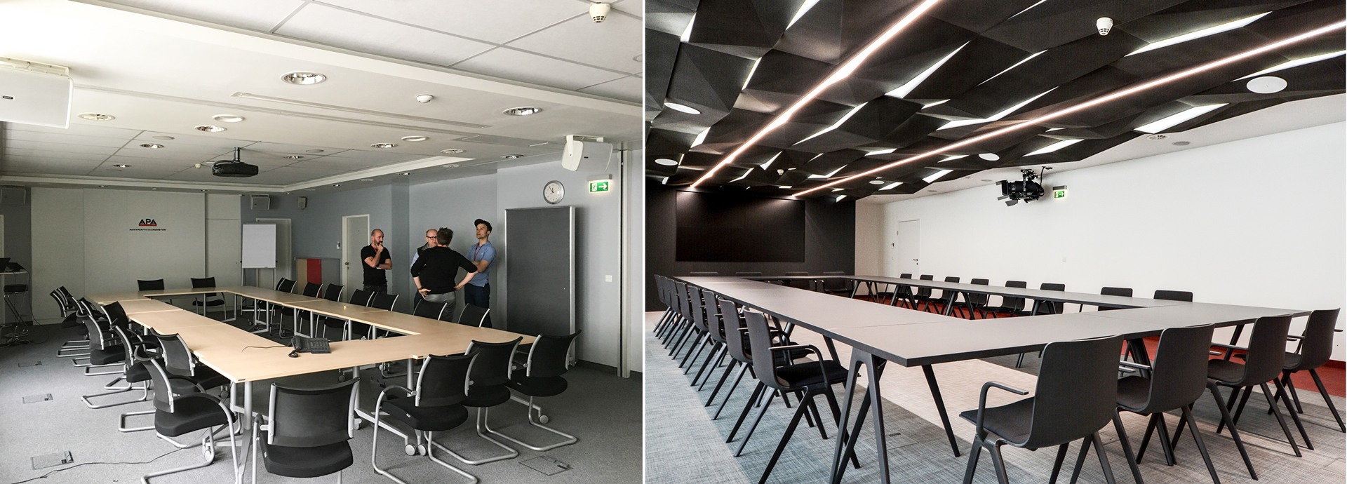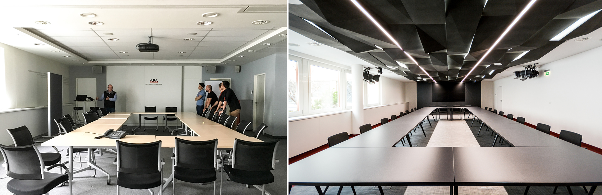 "Für das Raumdesign zeichnete das Wiener Designteam Who Cares?! verantwortlich. Von sieben Firmen, die man sich angesehen hat, wurden drei zum Pitch eingeladen, schließlich konnte sich Who Cares?! durchsetzen."