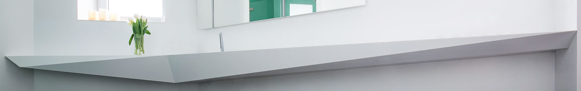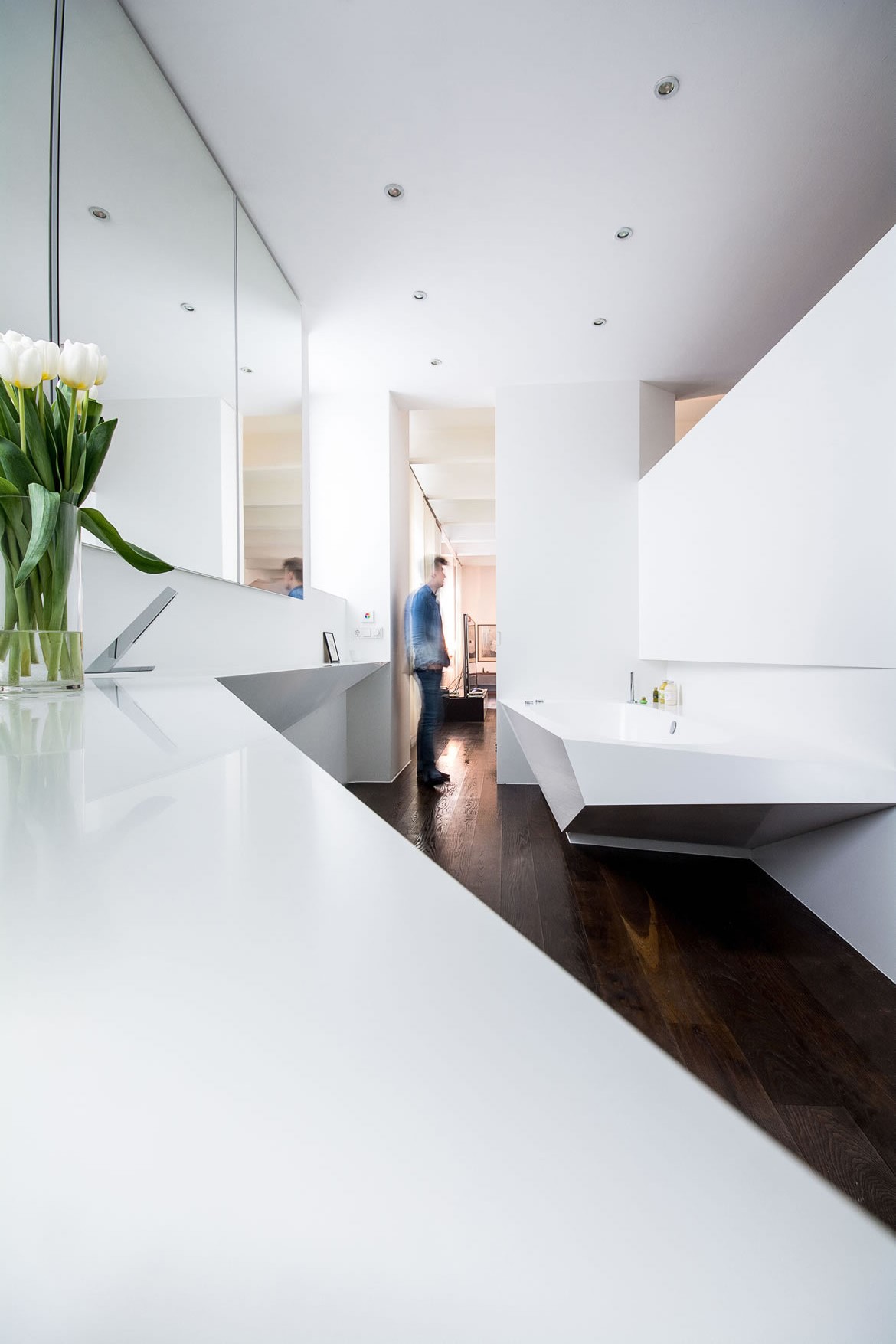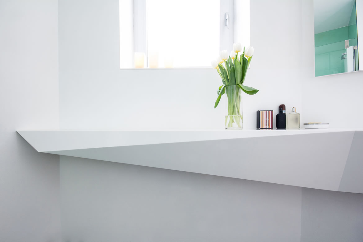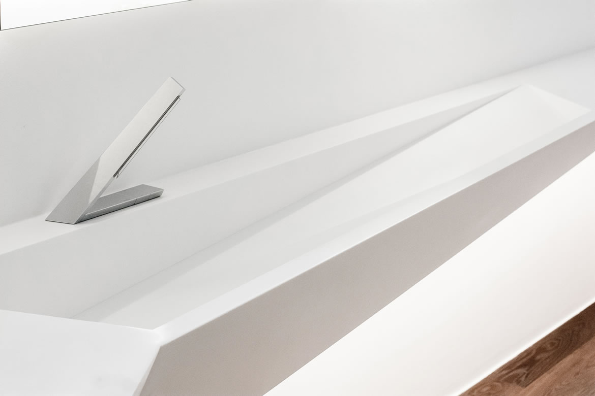 The longest single sink in the world comes with a floating bathtub in lowpolydesign made of Dupont Corian.